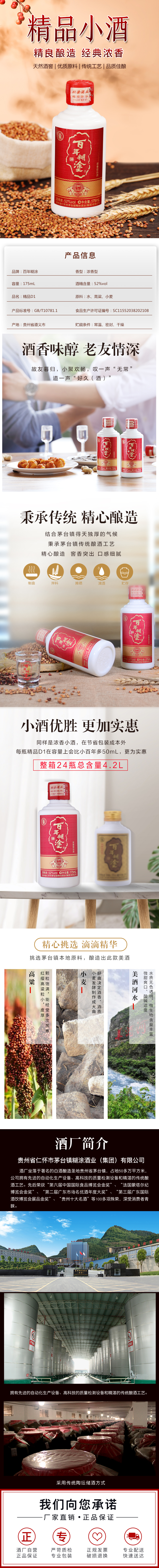 返回列表 百年糊涂酒-精品D1 精品D1 香型:濃香型白酒 酒精度:52%vol 凈含量:175mL 產(chǎn)品描述: 口感特質(zhì):窖香濃郁、口感綿甜柔和、回味悠長、留香持久。精品D1是百年糊涂酒系列專用于電商渠道的產(chǎn)品,面向全國各地消費者,酒體集中百年糊涂酒系列各產(chǎn)品優(yōu)點,再加以延伸,使口感香味等更加豐富飽滿。包裝上融合中國傳統(tǒng)文化元素,再以現(xiàn)代表現(xiàn)手法進行設計,加上特殊工藝處理,使包裝整體呈現(xiàn)大氣,精美,富有時尚感,喜悅,動感,充分表達人們對“智慧人生,精品生活”的愿望。 線上購買: 天貓 京東 產(chǎn)品詳情 推薦產(chǎn)品 百年糊涂酒-經(jīng)典小百年 經(jīng)典小百年 百年糊涂酒百福6# 百福6# 百年糊涂酒 藍純經(jīng)典 藍純經(jīng)典 返回頂部